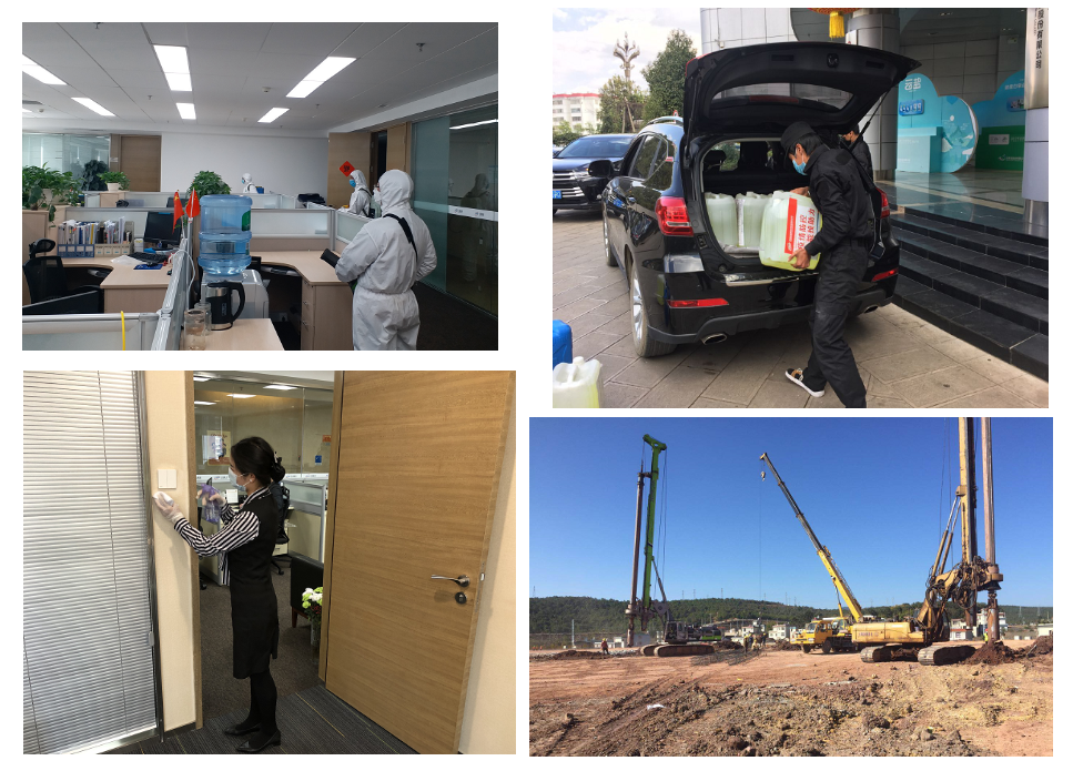 公司各部門及各公司作為疫情防控第一線,認(rèn)真履行各自防控責(zé)任,做好辦公場所、施工現(xiàn)場的消殺和疫情防控監(jiān)督工作: